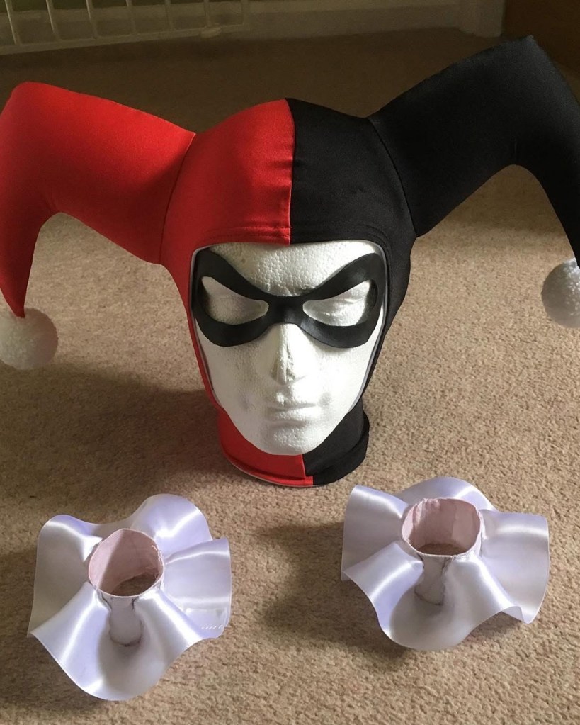 This is the Harley Quinn design; based off of the 2017 animated film “Batman & Harley Quinn”. Well, to be candid, this was just a generic jester Harley Quinn originally, I just ordered a Sehnsucht Harley Quinn jester hood to upgrade my original Harley. Then, I realised it matched the look from the film.